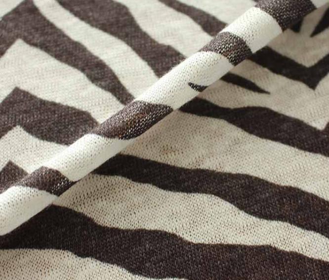 Potlačený džersejový úplet:Tkanina má na povrchu potlač, ktorá dodáva kreatívny a módny prvok. Konštrukcia z jednoduchého džersejového úpletu poskytuje mäkkosť, pružnosť a hladký pocit na pokožke.